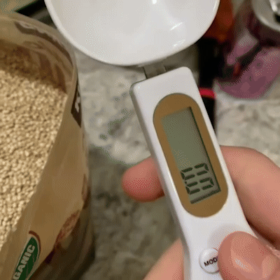 في الملعقة. سيتم عرض وزن المكون على شاشة LCD الكبيرة.